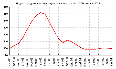 По данным SteelWeek на 25.12.2009 за месяц общий индекс мировых цен на стальную продукцию вырос на 0,7%. Плоский прокат подорожал на 0,3%, а длинномерный подорожал на 1,4%. На европейском рынке цены снизились на 2,6%. На азиатском рынке цены возросли на 3,2%. Цены на рынках Северной Америки снизились на 1,2%.