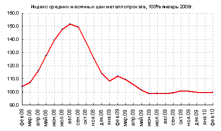 По данным SteelWeek на 27.02.2010 за месяц общий индекс мировых цен на стальную продукцию вырос на 1,7%. Плоский прокат подорожал на 1,6%, а длинномерный подорожал на 1,9%. На европейском рынке цены выросли на 0,7%. На азиатском рынке цены выросли на 0,5%. Цены на рынках Северной Америки увеличились на 4,8%.