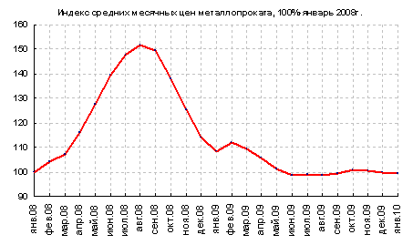 По данным SteelWeek на 29.01.2010 за месяц общий индекс мировых цен на стальную продукцию вырос на 6,6%. Плоский прокат подорожал на 8,2%, а длинномерный подорожал на 3,8%. На европейском рынке цены выросли на 2,6%. На азиатском рынке цены выросли на 7,2%. Цены на рынках Северной Америки увеличились на 9%.