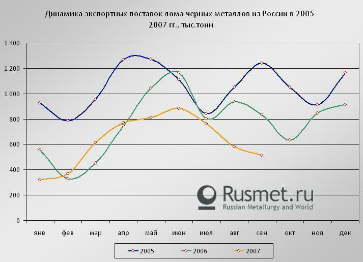 В результате ежемесячная динамика экспортных поставок каждый год напоминает прошлогоднюю, но на более низком уровне. В 2007 году объемы экспорта превышали показатели прошлого года лишь в феврале-апреле, что было обусловлено активизацией турецких потребителей российского продукта. Пиковых значений экспорт достиг к началу лета и с тех пор продолжает падать.