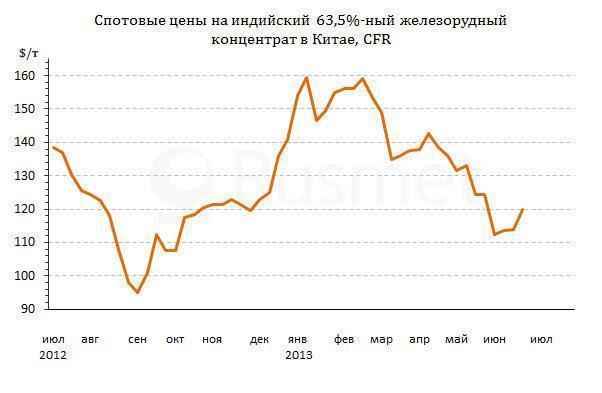 Предполагается, что компенсировать этот рост поможет падение добычи железной руды в Китае, где ее себестоимость особенно высока и часто превышает $100 за т. По данным китайской горнорудной ассоциации CMMEA, по состоянию на начало июля прекратили работу порядка 20-30% национальных железорудных предприятий. Правда, добыча руды в стране составила в июне 139,3 млн. т, на 7,3% больше, чем в тот же месяц 2013 года, но, учитывая постоянное ухудшение качества этого материала, реальный прирост в пересчете в 62%-ный концентрат должен быть намного более скромным.