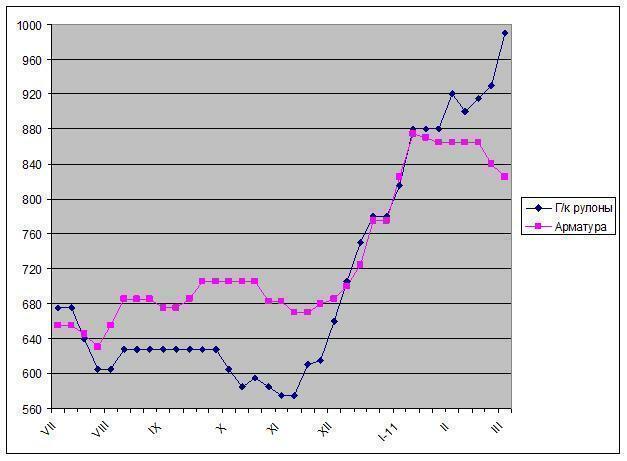 В принципе, у производителей стали есть шансы удержаться на достигнутом уровне. В марте, как ожидается, начнут закупки проката конечные потребители в США и Европе. После двух с половиной лет кризиса промышленные компании в этих регионах все же возобновляют закупки оборудования, что будет способствовать оживлению в машиностроении. Постепенно восстанавливаются и продажи потребительских товаров длительного пользования. Тем не менее, специалистов весьма смущает то, что видимый спрос в западных странах формируется в настоящее время, в основном, дистрибуторами. В феврале они должны уйти с рынка, а с учетом того, что американские и европейские металлурги наращивают сейчас производство стали, в апреле вместо ожидаемого подъема может произойти спад цен вследствие избытка предложения.