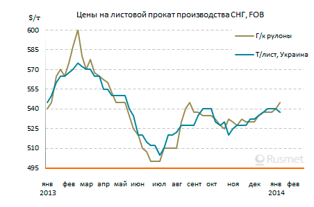 В стране продолжается политический кризис, начавшийся еще в декабре со старта широкомасштабного антикоррупционного процесса, затронувшего высшие уровни правоохранительных органов. Курс турецкой лиры за последний месяц потерял более 6% стоимости по отношению к доллару. Местные металлургические компании в соответствии с этим сдвинули вверх котировки в лирах, но в долларовом эквиваленте они, скорее, понизились по сравнению с серединой декабря. Как правило, мартовские горячекатаные рулоны предлагаются в Турции не более чем по $590-595 за т EXW.