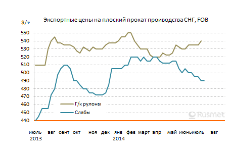 Ранее, в конце июня – начале июля, турецкие компании добились понижения котировок на российские и украинские слябы, подешевевшие от $490-500 до $480-495 за т FOB. Впрочем, полуфабрикаты в последние несколько недель, и в самом деле, сбавили в цене вследствие спада на мировом рынке железной руды и уменьшения спроса в Восточной Азии. Стоимость российских полуфабрикатов на Дальнем Востоке к началу июля сократилась до около $500 за т FOB, при этом, один из крупнейших поставщиков этой продукции, «Евраз», объявил о снижении экспортных продаж на свободном рынке в пользу внутрикорпоративных поставок.