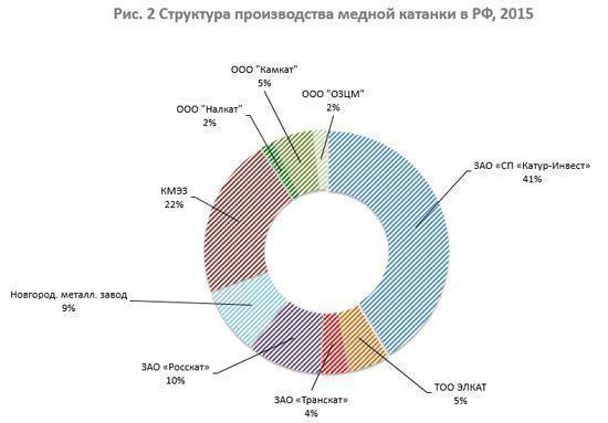 В марте 2015 года падение объемов производства медной катанки относительно февраля 2015 года наблюдалось на большинстве предприятий. Максимальный рост зафиксирован на предприятии ЗАО «Росскат» (+37% к февралю). На 0,3% увеличилось производство медной катанки в марте относительно февраля 2015 года на СП «Катур-Инвест», по остальным предприятиям зафиксировано падение производства медной катанки.