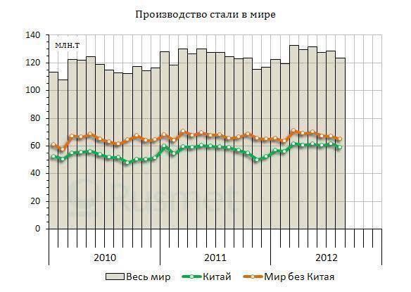 Правда, увеличивая выпуск, китайские компании наращивают экспорт. В марте его объем достиг 5,28 млн. т, что на 24,5% превышает уровень предыдущего месяца. Это максимальный показатель внешних поставок с июня 2010 года. Всего в первом квартале китайский экспорт стальной продукции составил 14,43 млн. т, на 18,8% больше, чем в тот же период годичной давности. Однако расширение китайского экспорта стали обернулось падением котировок на стальную продукцию.